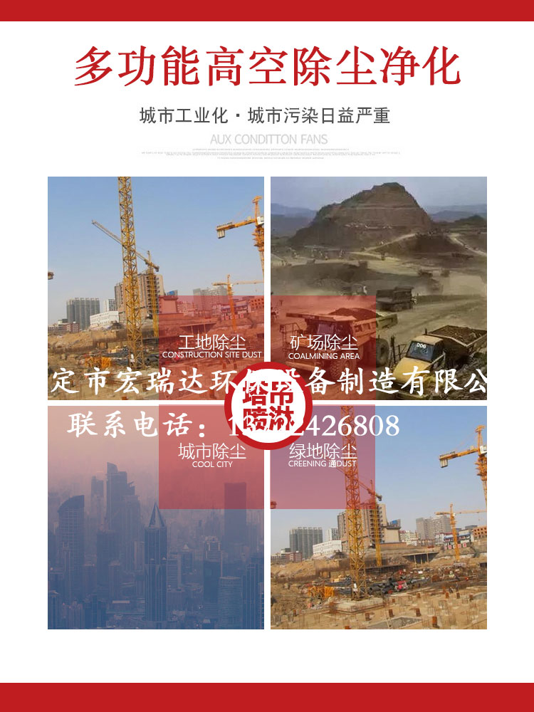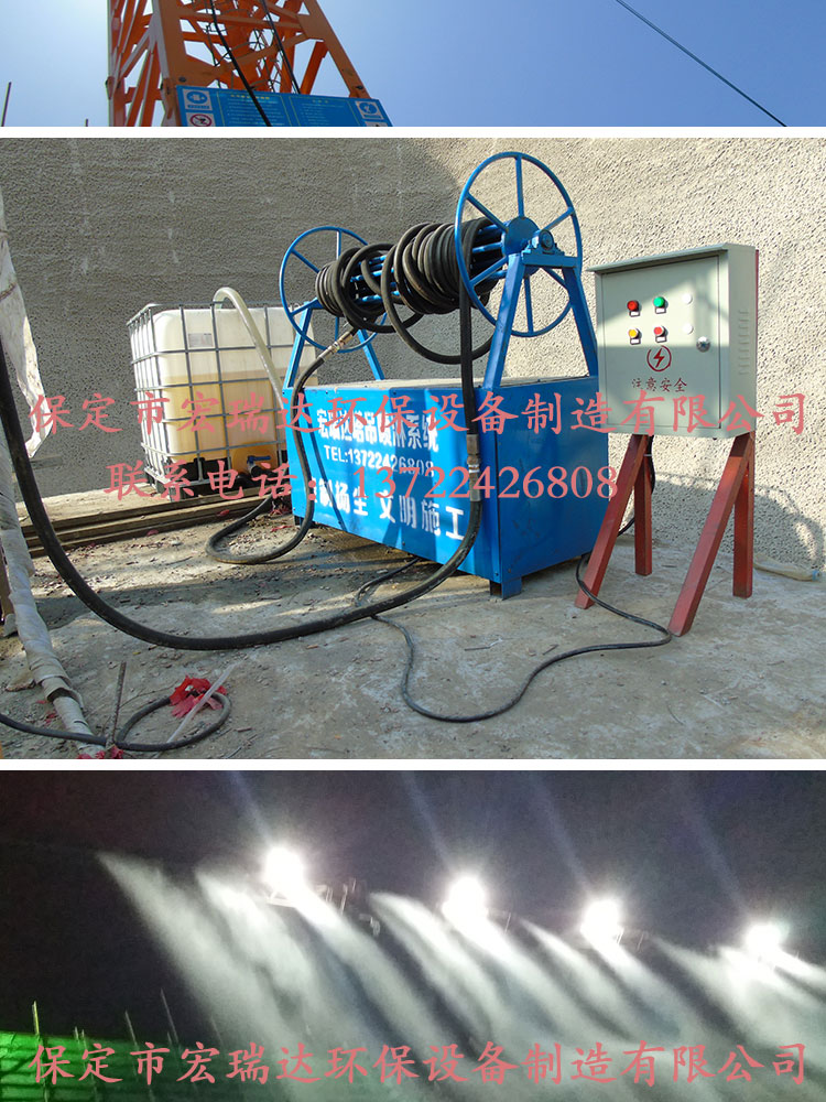 - HRD-50塔吊噴淋系統噴淋范圍廣,可以360度旋轉,能夠有效地控制揚塵,治污減霾,高溫天氣可以降溫,還可以預防并減少火災,可與市政管網連接取水,也可以與重復水回收系統相結合,有手動、自動兩種控制方式。